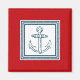 Design à thème nautique avec décoration d'ancre en carrés rayés sur arrière - plan rouge
