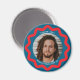 Personalize this circle magnet with your photo and descriptive text to create one of a kind magnet gifts for friends, parents and grandparents. The wavy line bottle cap style squiggle is chic and trendy in red on a navy blue background. Create your own custom magnet by using the blue edit design button to change the colors and fonts to suit your style completely.