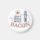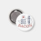 Aimant frigo Bcon pour Texas! Le design d'un amateur de bacon texan avec un vieux look d'ouest. Graphique rouge et bleu d'une étoile solitaire, un contour du Texas, et une bande de lard. Citation de lard drôle de Houston à El Paso.