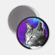 Ajoutez un peu de flair amusant à votre réfrigérateur ou à votre casier scolaire avec ce mignon aimant pour chat spatial! Il a un arrière - plan d'espace violet et bleu avec au premier plan un grand visage de chat noir et blanc. Parfait pour un amoureux des chats ou un amoureux des choses bêtes et amusantes !