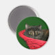 Tortoiseshell cat dans le panier rouge aimant photo de Noël