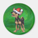Animal Parade Festive Chihuahua Chien cadeaux de Noël et accessoires apportés par Imagine That! Le design présente l'art original d'un Chihuahua noir et bronzé mignon décoré pour les vacances avec un chapeau de Père Noël rouge vif sur la tête et une couronne de saint vert festif sur le cul avec un arc rouge joyeux. Sur de nombreux cartes de fin de année et cadeaux, le petit chien noir et bronzé amusant se dresse dans un paysage enneigé avec un ciel étoilé bleu texturé peint par Traci Van Wagoner. Cet art amusant pour les animaux de compagnie conviendra parfaitement aux amateurs de Chihuahua, aux amoureux de les chiens et aux amateurs d'art animal humoristique de tous âges. Rejoignez la Parade des animaux et sourirez quelqu'un que vous aimez avec un cadeau de notre Chihuahua festif vêtu pour les vacances. Malheur !