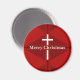 Ce bel aimant rouge présente une croix blanche et un accueil de Noël personnalisable.