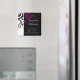 Gras et saisissant moderne mariage noir moderne faveur ou Magnet Réservez la date avec des accents blanc et fuchsia / magenta, avec délicat arrière - plan de feuille de rouleau tourbillon. Customisez en ligne avec vos coordonnées de mariage.