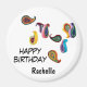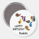 Aimant d'anniversaire coloré et heureux avec nom personnalisé. Modifiez ou supprimez facilement le nom à l'aide du Modèle fourni. Choisissez parmi les magnets de boutons de qualité de 3" (illustré), 2,25" et 1,25" (le texte est minuscule sur celui-ci). Un cadeau parfait et bon marché pour une famille ou un ami. Très léger à envoyer par la poste comme un cadeau. Pour plus d'informations, reportez-vous à la section "À propos de ce produit" à côté. HAUTE note. La photo de paisleys piqués est un projet dans mon livre, ©2006 Molly Smith Christensen.
