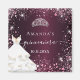 Pour un élégant Quinceañera, 15ème anniversaire. Une couleur arrière - plan bordeaux. Décorée de poussière de parties scintillant rose, d'une couronne de tiare et d'une robe. Personnalisez et ajoutez un nom, un âge et une date. Quinceañera est écrit avec un script de style moderne écrit à la main avec des swashes. Peut être utilisé à la fois comme faveurs de fête ou comme rappel Enregistrer la date pour vos invités.