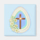 Croix en bois brillant est encadrée de Lillies blanches et d'oeuf de fenêtre pour symboliser la renaissance. L'arrière - plan est un joli aqua ombragé. Un joli design religieux symbolique.