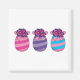 Illustration de trois oeufs de Pâques avec fleurs et ruban aux couleurs rayées de rose, magenta et violet. Ce design est une idée cadeau pour les amateurs de cadeaux surprenants, les amateurs de chasseurs d'oeufs de Pâques et les amateurs de couleurs pastel.