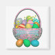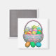 Aimant pratique avec mon image colorée d'oeufs peints de Pâques dans un joli panier avec une bannière qui dit "Bonne Pâques".