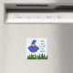 Un design amusant pour les amateurs d'oiseaux. Un joli oiseau bleu avec un grand bec et des ailes et plumes bleues uniques. Grande herbe verte. Un grand dicton "nous aimons nourrir les oiseaux"...