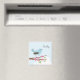 Oiseau bleu sur une branche de fleurs roses. Aimant frigo mignon à personnaliser avec son nom propre ou pour un cadeau.