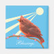 Un mignon aimant cardinal. Petit oiseau debout sur une branche d'arbre en fleurs sous le soleil rayonne sur un arrière - plan bleu clair. Le texte peut être personnalisé.