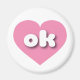 Cet aimant est composé d'un coeur rose cool et calme contenant les lettres coques inférieures blanches et arrondies, ok, une version ludique de l'abréviation pour Oklahoma, l'état le plus tôt.
