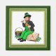 L'adorable Irlandais Leprechaun fumant sa pipe pendant qu'il se repose à côté de son pot d'or. Un design enchanteur pour la St. Patrick's Day ou toute l'année.