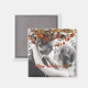 Un mélange de motifs avec feuillage orange et marron peint à la main sur le dessus et le bas, ainsi que l'ajout de votre propre photo ou image personnelle pour le parfait design magnétique de la Saint-Valentin.