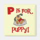Le texte rouge lit "P est pour le chiot" sur ce T-shirts mignon de conception de chiot, tasses, sacs fourre-tout, cartes, et plus, grands pour n'importe qui de n'importe quel âge qui aime des chiens !