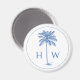 Cet aimant monogrammé d'inspiration côtière présente un palmier classique en bleu sur un arrière - plan blanc avec un monogramme que vous pouvez personnaliser avec votre choix d'initiales. Idéal pour les faveurs monogrammes et les sacs cadeaux monogrammés.