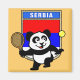 Ce adorable petit panda adore sortir sur la cour et frapper des couilles. Panda joue devant un grand drapeau de Serbie. Il s'agit d'un excellent design pour quiconque aime jouer au tennis, regarder le tennis ou simplement aimer les mignonettes pandas.