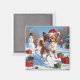 Aimant Papillon Chien courant dans la neige avec Casquett