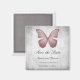 Élégant et simple Enregistrer l'aimant Date avec un papillon rose contre un arrière - plan gris grunge. Ce design est un choix unique pour annoncer un mariage moderne. Facile à customiser avec vos détails mariages. Cliquez sur "Customiser" pour trouver d'autres options de personnalisation.