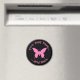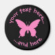 Papillon ulysse rose. Icône vectorielle avec couleur personnalisable. Couleur arrière - plan personnalisée. Deux champs de texte personnalisés sur cercle.