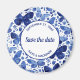 Peinture à papillon couleur bleu et blanc indigo moderne. Superbe coordination Magnet Réservez la date comme un rappel pratique pour vos invités. Modifiez le texte pour qu'il corresponde à votre célébration.