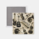 Ce design musical amusant présente une variété d'instruments de musique sur une feuille de musique vintage, arrière - plan de collage. La palette tendance de couleurs noir et or fait un aimant frigo attrayant. Les instruments présentés sont : guitare acoustique et électrique, saxophone, clarinette, trombone, trompette, corne française, flûte, violon, violoncelle et batterie. Ajoutez votre nom ou autre texte à personnaliser. Recherchez ID481 pour voir d'autres choix de couleurs et produits avec ce motif.