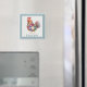 Un mignon petit aimant frigo de poulet qui est personnalisé avec votre nom. Hen est créé dans un design coloré à motifs de patchwork avec un minuscule cadre de pois en bleu.