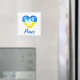 Montrez votre soutien au peuple ukrainien avec cet aimant frigidaire avec une silhouette de colombe de paix sur un drapeau en forme de coeur de l'Ukraine