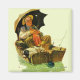 Artiste : Norman Rockwell | Vieux et chien dormant en barque avec plusieurs lignes de pêche