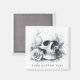 Magnet frigo avec une peinture aquarelle d'un crâne entouré de roses, et votre nom ou autre texte personnalisé à droite.