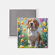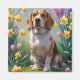 Un chien gai s'installe paisiblement sur une pelouse verdoyante, entourée de fleurs printanières colorées sous un ciel bleu doux. Cette peinture à l'huile numérique saisit un moment de sérénité avec des coups de pinceau expressifs, des couleurs chaudes et un sentiment de joie douce.