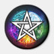 Pentagramme lumineux dessiné de façon artistique avec cinq éléments magiques, eau, terre, feu, astral, air sur arrière - plan noir. Pentagramme de Wiccan. Wicca