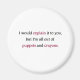 Produits multiples avec le commentaire humoristique "Je vous l'expliquerais, mais je n'ai plus de marionnettes et de crayons" sur eux.