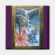 La quête du Saint Graal (Saint Graal) constitue un segment important des légendes du roi Arthur.Peinture à l'huile contemporaine colorée et vibrante, miniature sur panneau en bois avec feuille dorée en bleu clair, rouge, blanc, marron, jaune or, 2010 par Alessandro Lumini. Ce design cool et artistique est aussi un beau cadeau pour Pâques et Noël