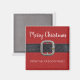 Ceinture à père Noël en noir avec boucle argentée sur combinaison en velours rouge. Joyeux Noël en écriture blanche et un message personnel en blanc sans police.