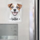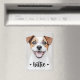 Aimant frigo photo avec votre photo d'animal de compagnie personnalisée avec le nom de l'animal comme un texte noir (ou couleur personnalisée) superposé flanqué de deux coeurs.