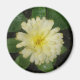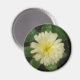 Ce bel aimant présente une photo détaillée d'un marigold jaune pâle. La photographie a été prise en macro et montre un contraste saisissant entre cette fleur pâle et ses feuilles vert foncé.