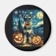 Cute Miniature Schnauzer Chien Halloween Jack-o'-lantern Citrouille Face Starry Night Van Gogh Style