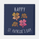 Pink Lucky Shamrock Clover Happy St. Patrick's day Magnet. Trois shamrocks sur arrière - plan bleu marine. Porte-vêtements avec quatre feuilles pour la chance.