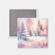 Un joli aimant hivernal rose merveilleux. Une forêt rose avec des pins couverts de neige.