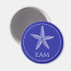 Ces mignons magnets ronds monogrammés d'inspiration côtière présentent une étoile de mer blanche sur un arrière - plan de bleu marine classique. Personnalisez le monogramme avec votre choix d'initiales. Idéal pour les sacs cadeaux monogrammed beach party.