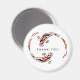 aimant Merci avec une paire de poissons koi noirs et rouges nageant et tournant autour de l'autre. Design minimaliste simple.