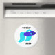 Imaginez un petit aimant blanc rond avec un étonnant poisson combattant siamois (poisson Betta). Le poisson est représenté dans deux belles nuances de bleu. Son corps est un bleu saphir profond et riche qui brille avec une irdescence subtile, tandis que ses nageoires fluides se transforment en une teinte bleu ciel plus légère. Les nageoires sont délicates, longues et légèrement translucides, s'épanouissant gracieusement par vagues, créant un sens du mouvement même dans l'immobilité. Le contraste des deux bleus ajoute de la profondeur à l’apparence du poisson, ce qui le distingue nettement de l’arrière - plan blanc propre de l’aimant.