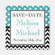 Magnet Réservez la date de coutume élégant pour annoncer votre mariage, conçu avec des pois blancs sur le turquoise en haut et un motif en zigzag noir & blanc en bas.