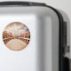 Un aimant avec une photo pittoresque. Un pont en bois qui mène à un chemin entouré d'arbres forestiers qui changent de couleur.