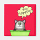Ce chat cool cool est dans une boîte à litière verte à citron vert avec un ballon de mots qui dit, "Poo Happens". Encouragement avec un peu d'humour. Bon appétit !