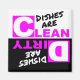 Aimant à placer sur le devant de votre lave-vaisselle pour aider à se rappeler si les plats sont propres ou sales. Comprend des lettres rose et blanche.