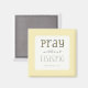Aimant carré avec un verset d'écriture court mais puissant de 1 Thessaloniciens 5:17, "Priez sans cesser" dans une police de narrateur moderne. Arrière - plan jaune; le mot "Priez" accentué avec le même jaune.