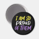 I am so proud of them magnet written in yellow, white, and purple on black for nonbinary parents. Show your pride for your non-binary child with the non binary colors for a mom or dad.